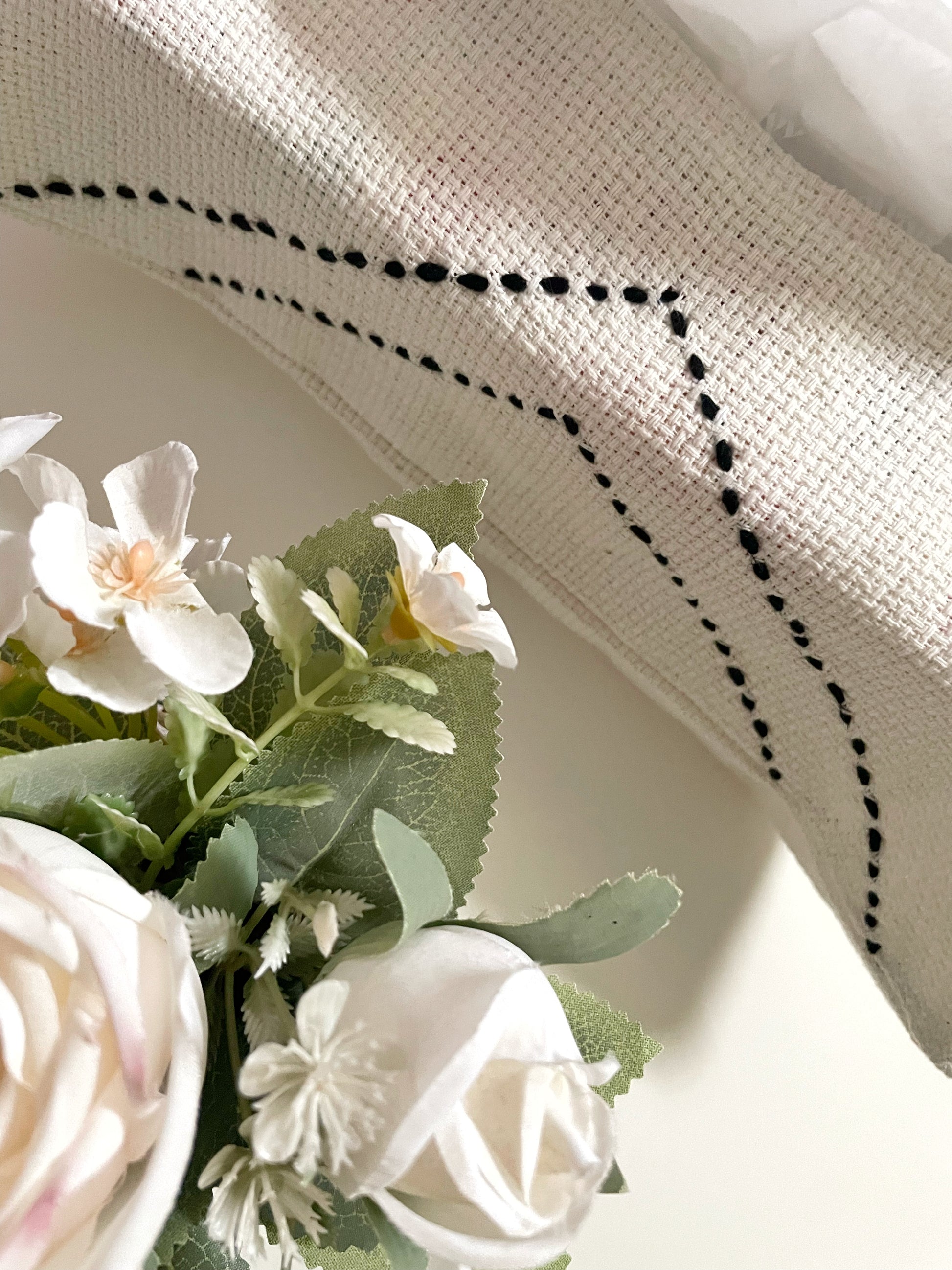 Off-white Tissue Box Cover with Black Embroidery